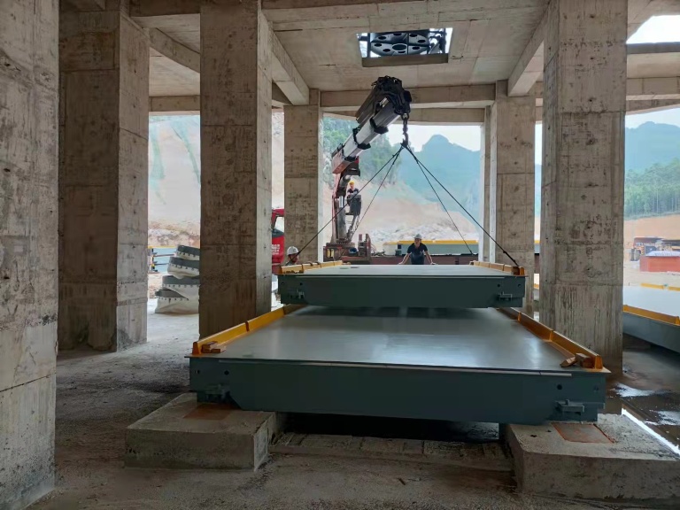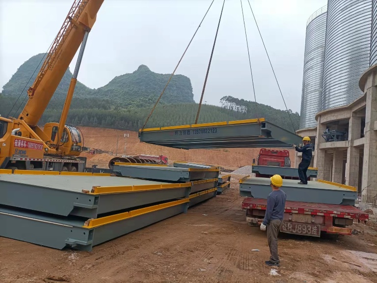 柳州特力汽車衡采用模塊化軸銷搭接,以便秤臺之間可以搭接互換,便于秤體現(xiàn)場安裝。限位采用縱向與橫向結(jié)合的方式,保證秤體縱向、橫向不移位。
